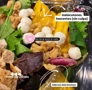 Por ejemplo, para nosotros no es simple queso, son perlitas de queso de cabra, no es aceite …. es aceite de oliva extra virgen; no son salsas… son aderezos y vinagretas que hemos emulsionado cuidadosamente para que le aporten el sabor que tu comida necesita, sea un sándwich o una ensalada, incluso nuestras bebidas, todo ha sido medido y comprobado para tu bienestar.